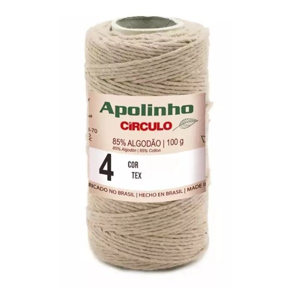 O Barbante Apolinho N4 Círculo é composto por 85% algodão, TEX 638, sendo cada novelo com 100g (156m).
